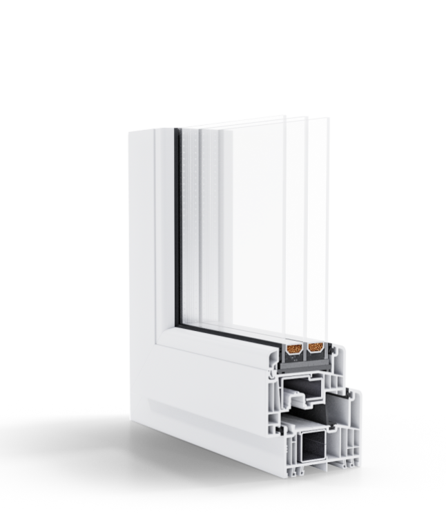 Profil s hloubkou 82 mm nabízí vynikající tepelnou a zvukovou izolaci. Šestikomorová konstrukce, trojité těsnění a moderní design zaručují dlouhou životnost a komfort užívání.